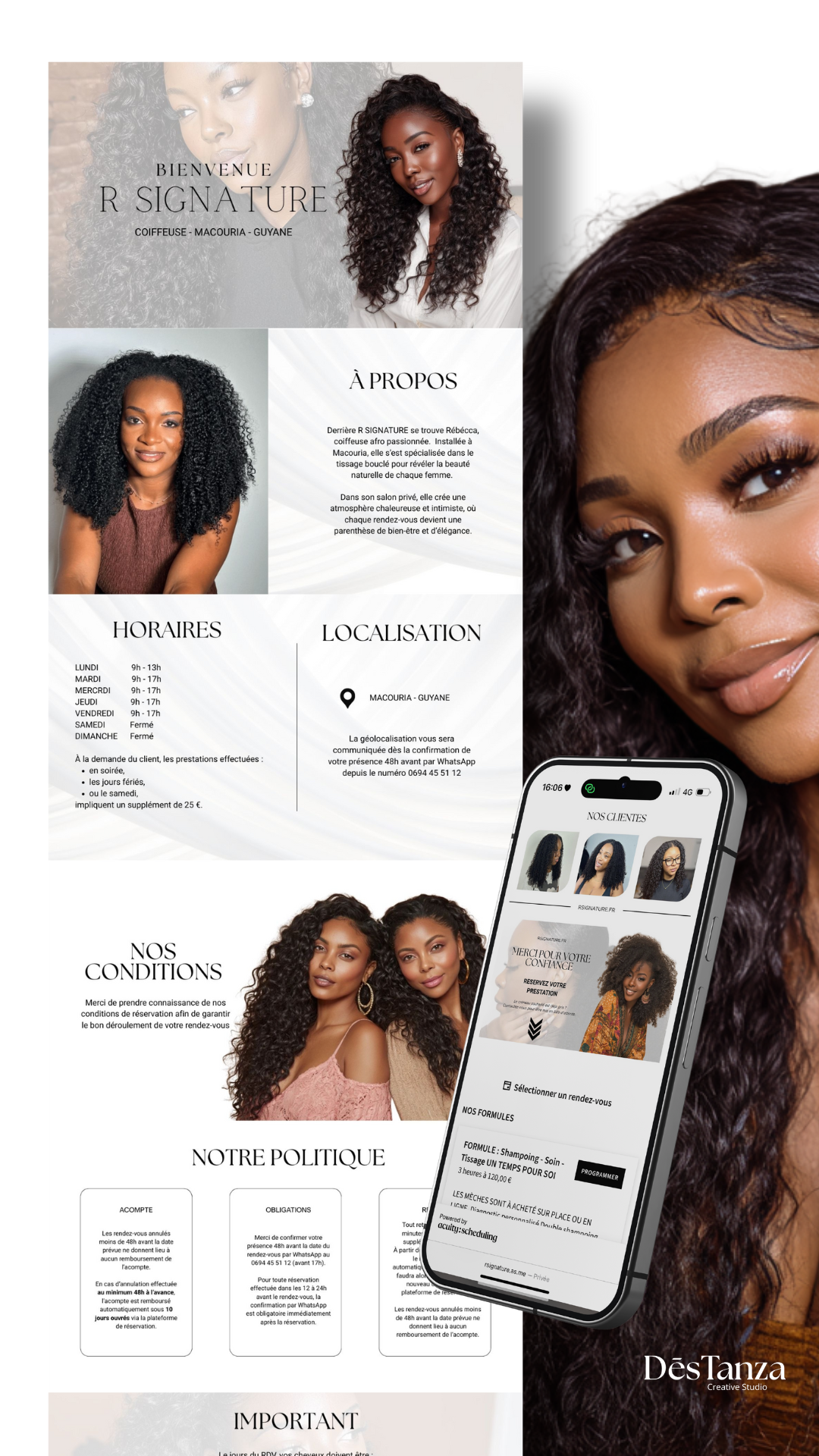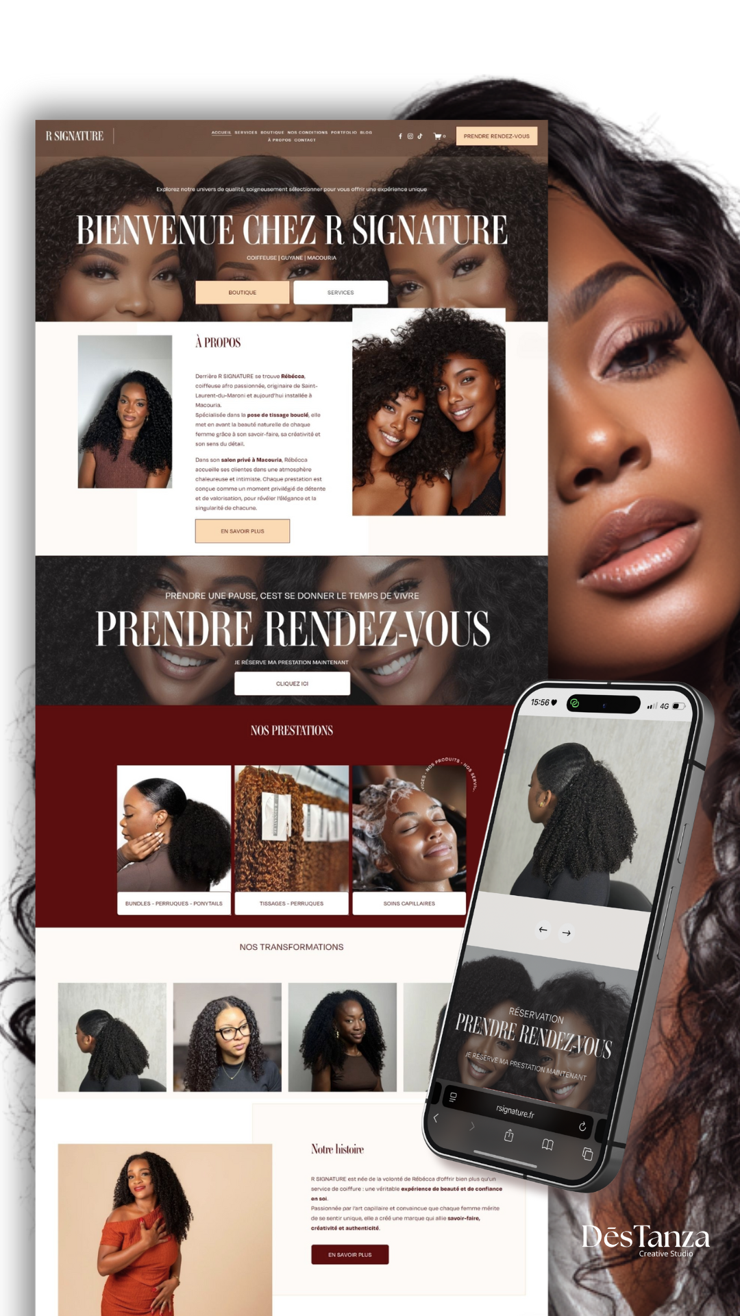 COIFFEUSE GUYANE - Portfolio R Signature - CREATION SITE WEB - KIT DE RESEAU SOCIAUX WEB DESIGN - SOCIAL MEDIA KIT